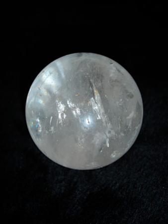 A clear Quartz sphere with excellent clarity displaying many beautiful veils and rainbows.