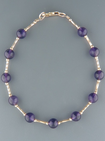 A bracelet featuring round Amethyst stones with gold beads