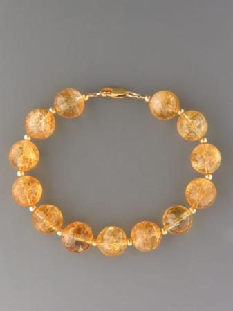 A bracelet featuring round faceted Citrine stones with gold beads.
