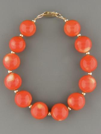 This bracelet features round Red Coral stone beads with 3mm round Gold beads.