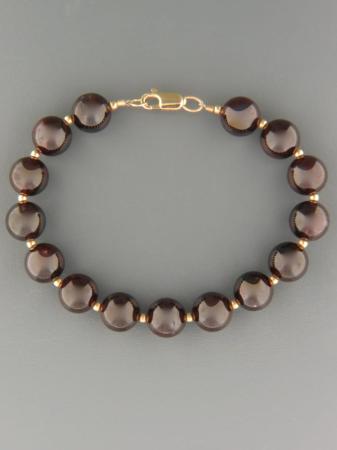 This bracelet features round Garnet stones with 2mm round Gold beads.