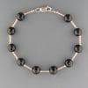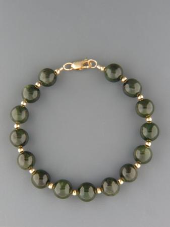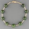 A bracelet featuring round Jade stones with 3mm round gold beads.