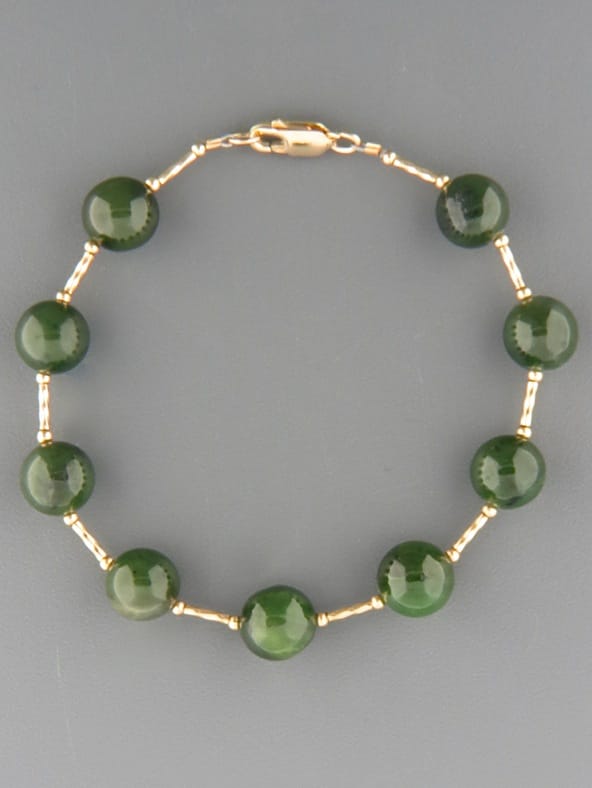 Jade Bracelet – 10mm round stones with twist beads – J928
