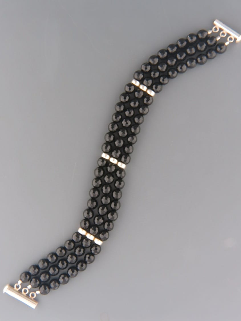 Onyx 3 strand Bracelet – Sterling Silver – OX931