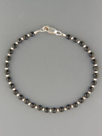 A bracelet featuring round faceted Onyx stones with Sterling Silver beads.