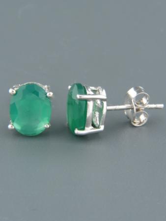 These Sterling Silver stud style earrings feature oval faceted Green Agate stones.
