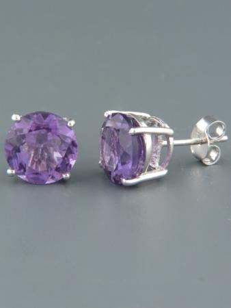 These Sterling Silver stud style earrings feature round faceted Amethyst stones.