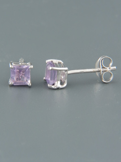 These Sterling Silver stud style earrings feature square faceted Amethyst stones.