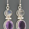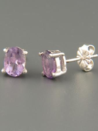 These Sterling Silver stud style earrings feature oval faceted Amethyst stones.