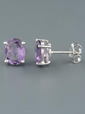 These Sterling Silver stud style earrings feature oval faceted Amethyst stones.