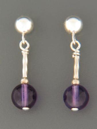 A drop style stud earring featuring round Amethyst stones with Sterling Silver beads.