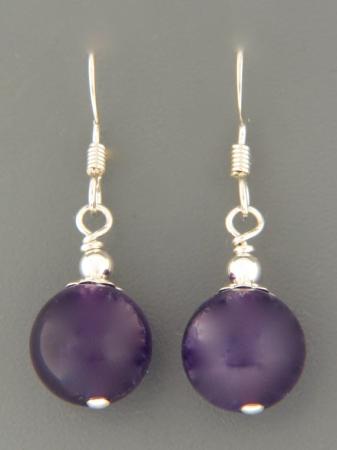 These drop style earrings feature round, smooth polished Amethyst stones with Sterling Silver beads.