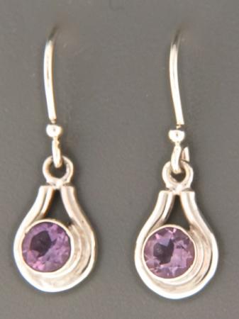 These Sterling Silver drop style earrings feature round faceted Amethyst stones.