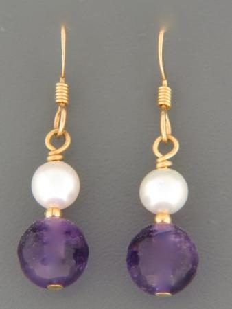 Amethyst Earrings with Pearls - 14ct Gold Filled - A502G