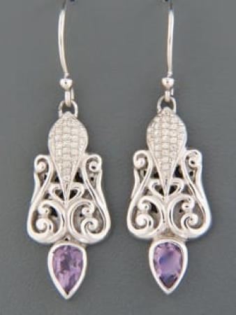 Amethyst Earrings with Zircon - Sterling Silver - A693