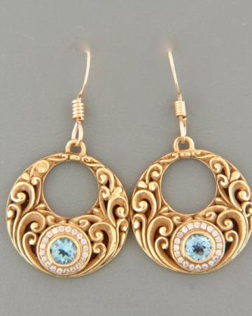 These Gold Vermeildrop style earrings feature round faceted Blue Topaz stones.