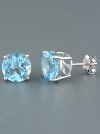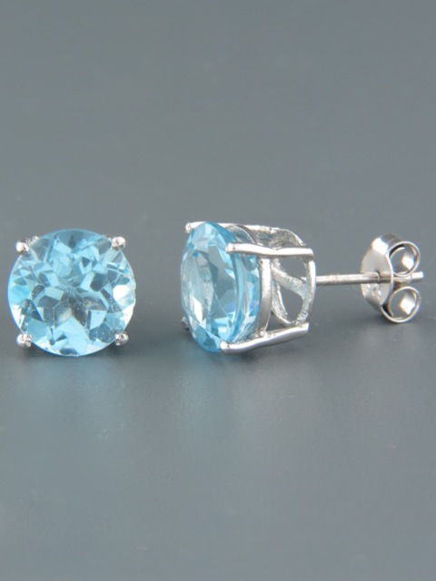 These Sterling Silver stud style earrings feature round faceted Blue Topaz stones.