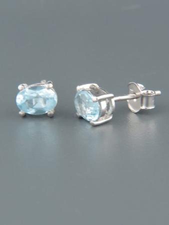 Blue Topaz Earrings – Sterling Silver stud – 5x7mm stones – BT586