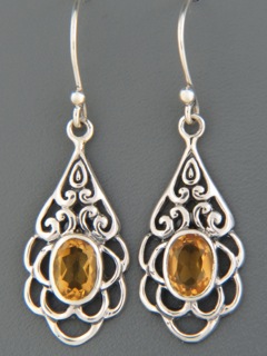 These Sterling Silver drop style earrings feature oval faceted Citrine stones.