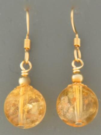 A drop style earring featuring round Citrine stones with gold beads.