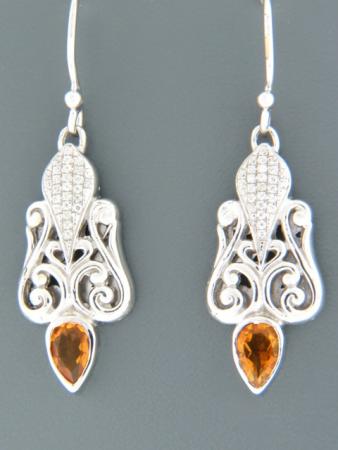 These Sterling Silver drop style earrings feature teardrop faceted Citrine stones with faceted Zircon accent stones.