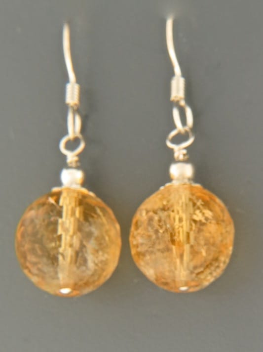A drop style earring featuring round faceted Citrine stones with Sterling Silver beads.