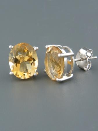 These Sterling Silver stud style earrings feature oval faceted Citrine stones.