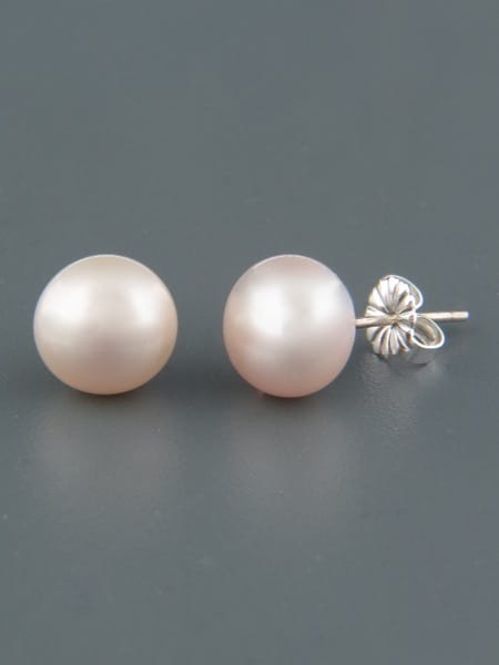 8mm Pink Pacific Pearl Stud Earrings - Sterling Silver - YP8ZS