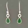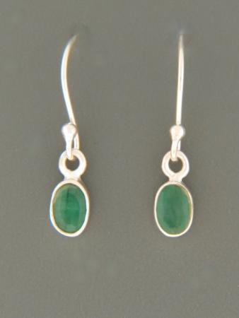 These Sterling Silver drop style earrings feature faceted, oval shaped natural Emerald stones.
