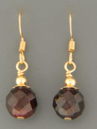 A drop style stud earring featuring round faceted Garnets with Gold beads.