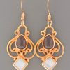 These Gold Vermeildrop style earrings feature teardrop faceted Garnet stones with faceted Zircon accent stones.