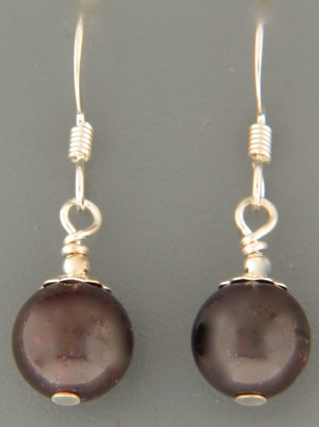 A drop style earring featuring round Garnet stones with Sterling Silver beads.