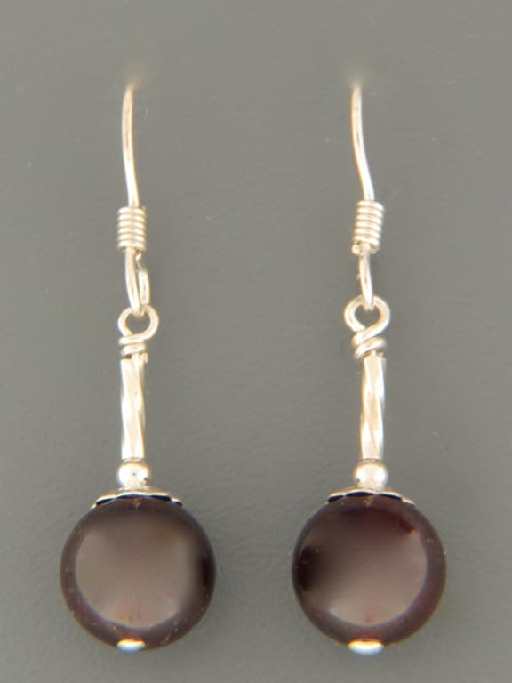 These Sterling Silver drop style earrings feature round Garnet stones with Silver beads.