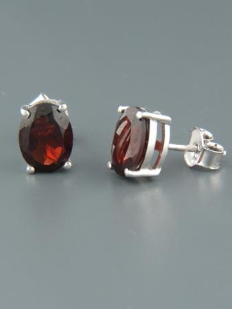 These Sterling Silver stud style earrings feature oval faceted Garnet stones.