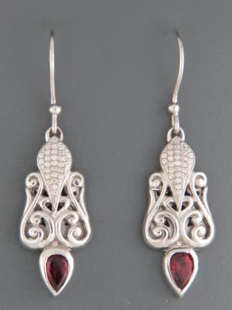 These Sterling Silver drop style earrings feature faceted teardrop Garnet stones with round faceted Zircon accent stones.