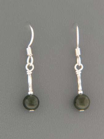 A drop style earring featuring round Jade stone beads with Sterling Silver twist beads.