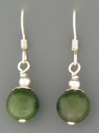 A drop style earring featuring round Jade stones with Sterling Silver beads.