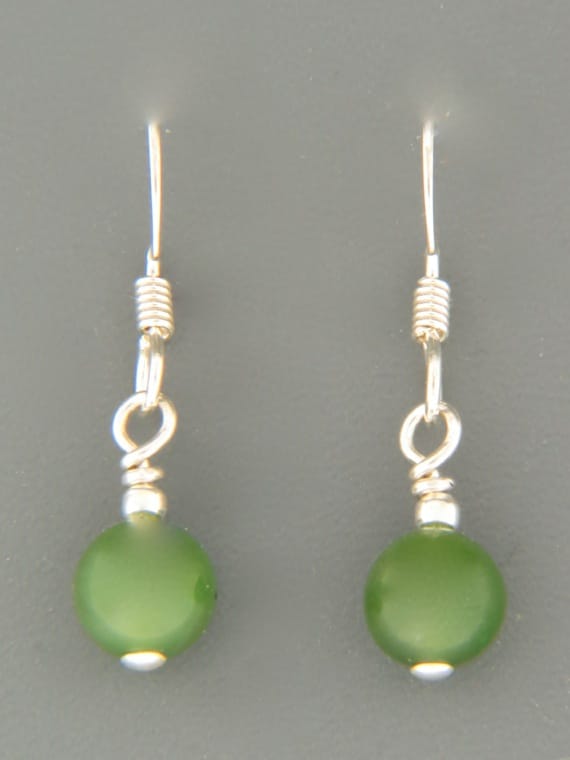 A drop style earring featuring round Jade stones with Sterling Silver beads.
