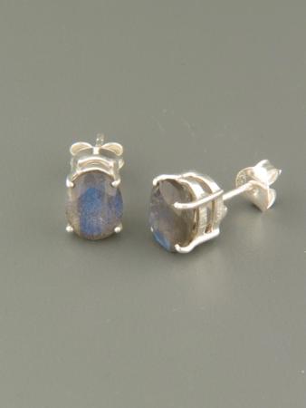 These Sterling Silver stud style earrings feature faceted, oval shaped Labradorite stones.