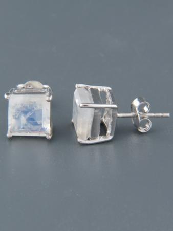 These Sterling Silver stud style earrings feature square faceted Blue Moonstones.