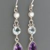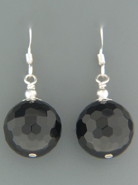 These Sterling Silver drop style earrings feature round, faceted Onyx stones.