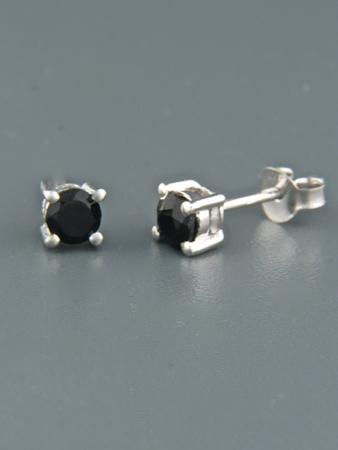 Onyx Earrings - Sterling Silver stud - 4mm stones - OX515