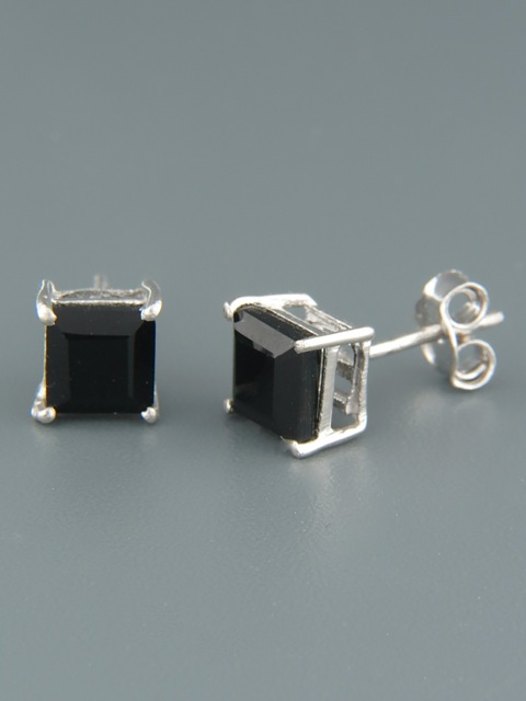 These Sterling Silver stud style earrings feature square faceted Onyx stones.