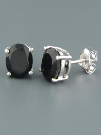 These Sterling Silver stud style earrings feature oval faceted Onyx stones.