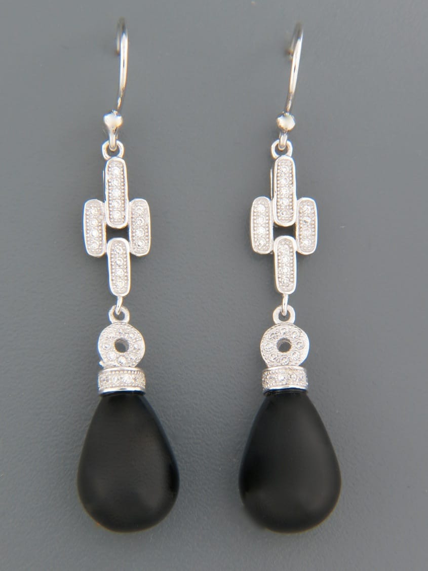 Onyx Earrings with Zircon - Sterling Silver - OX541