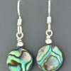 These Gold drop style earrings feature round, double sided, flat New Zealand Paua Shell beads.