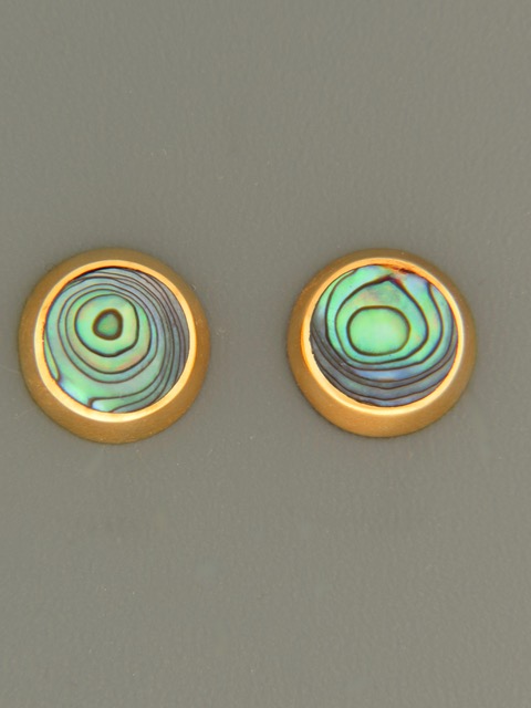 These Gold Vermeilstud style earrings feature round, inlaid New Zealand Paua Shell.