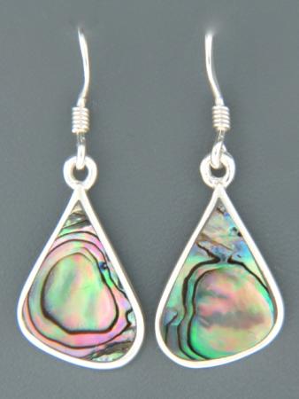 These Sterling Silver drop style earrings feature inlaid New Zealand Paua Shell.