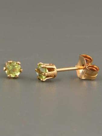 Peridot Earrings – Gold stud – 3mm stones – P503G