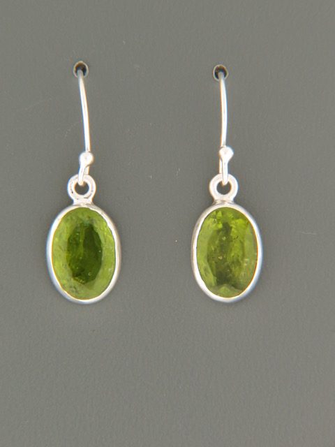 These Sterling Silver drop style earrings feature faceted, oval shaped Peridot stones.